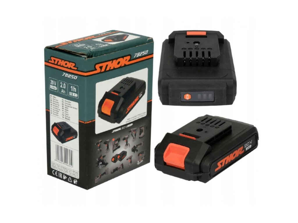 ✅Odolný bateriový systém Sthor 20V. Technologie Li-Ion zaručuje dlouhou životnost. Systém ochrany článků baterie proti přehřátí a vybití prodlužuje životnost článků bez kompromisů v kapacitě baterie. Indikátor vybití je chráněn před prachem a vlhkostí.
