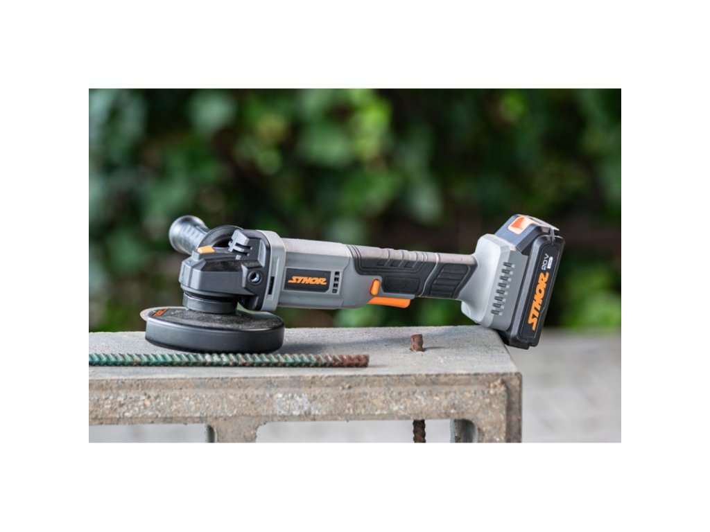 Aku úhlová bruska 125 mm, baterie 20 V 2 Ah + nabíječka Sthor 78091