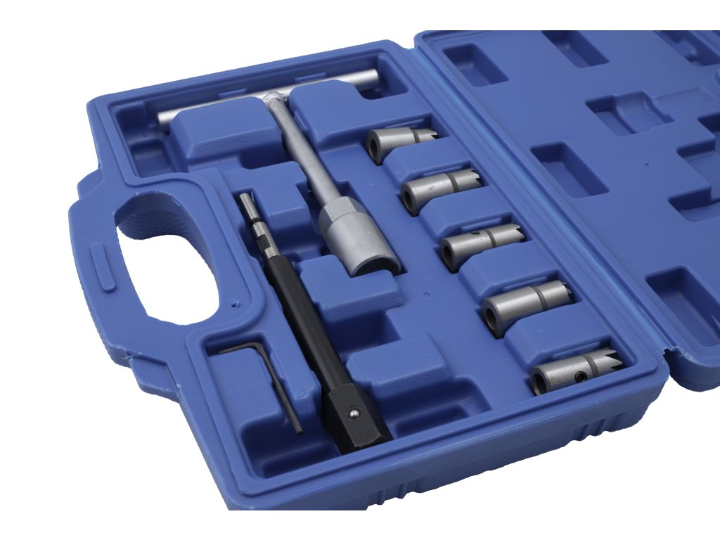 Tato souprava nástrojů slouží na očištění, srovnání nebo obnovu obnovu sedel dieselových vstřiků tak, aby nový nebo opravený vstřikovač správně pasoval a nedocházelo k profukování vlivem netěsného usazení.