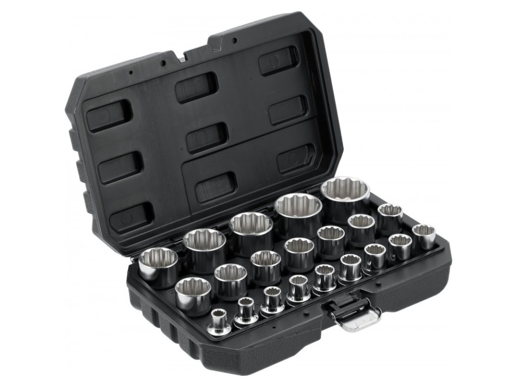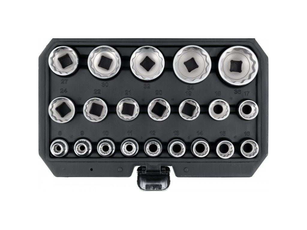 - obsahuje 21 1/2" dvanáctihranných nástrčných klíčů ve velikostech: 8, 9, 10, 11, 12, 13, 14, 15, 16, 17, 18, 19, 20, 21, 22, 24, 27, 30, 32, 34, 36 mm