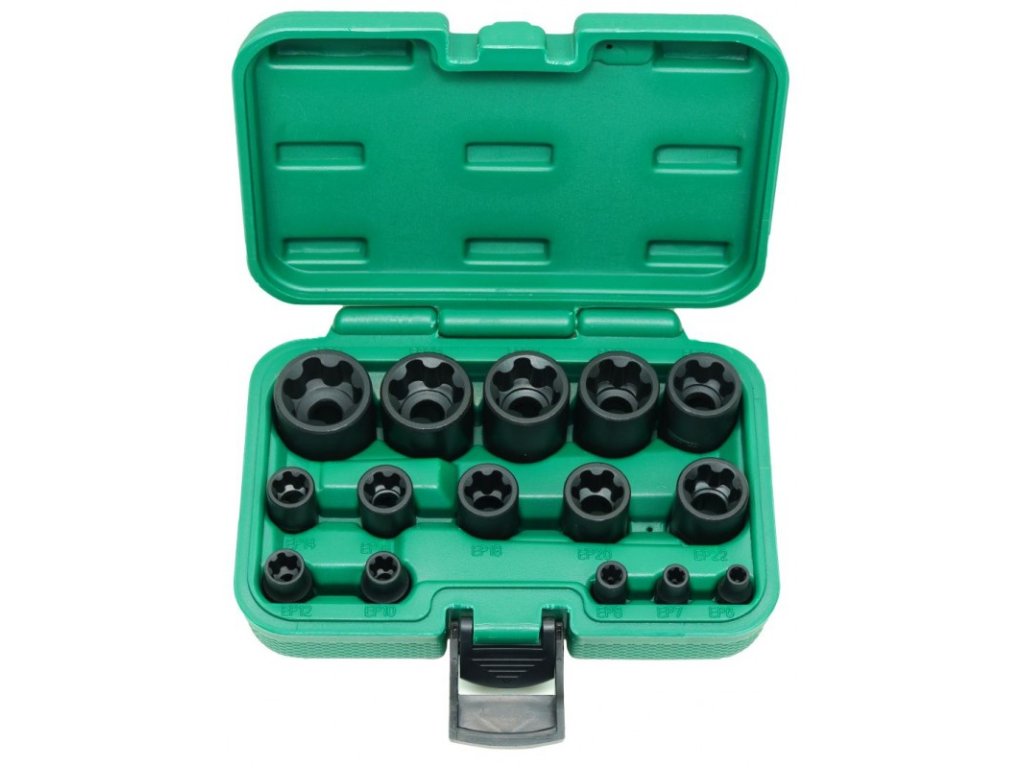 Sada zástrčných klíčů E-TORX PLUS 1/4", 3/8", 1/2" 15ks Jonnesway S33H5115S