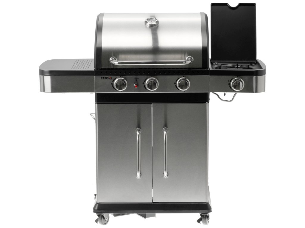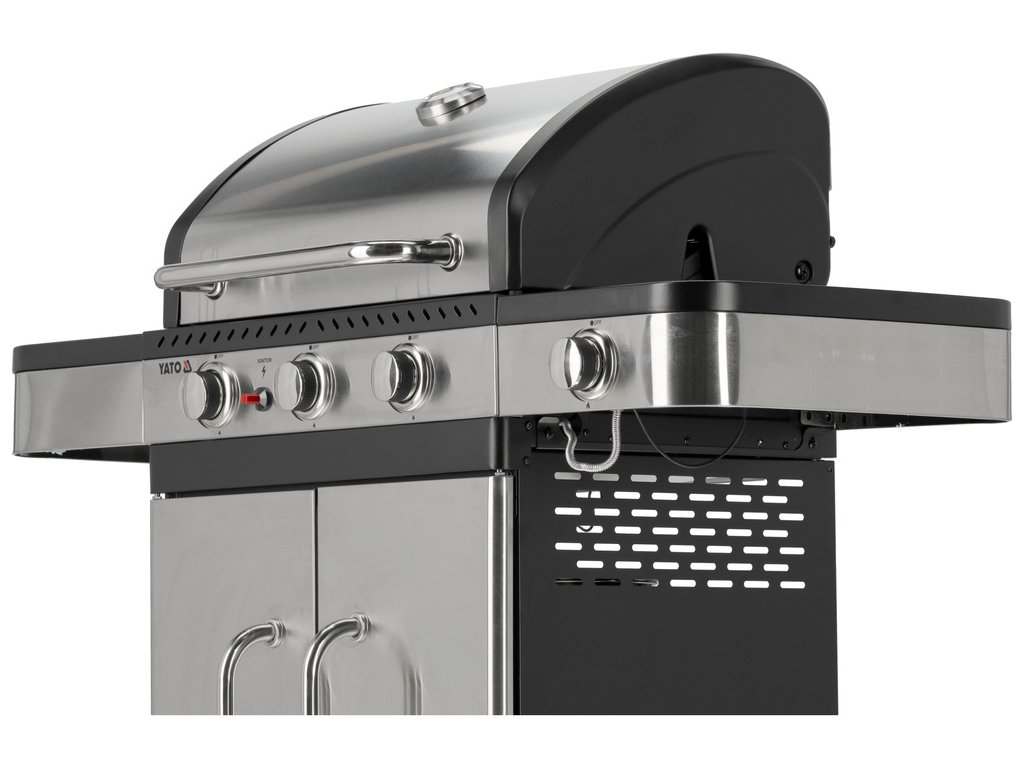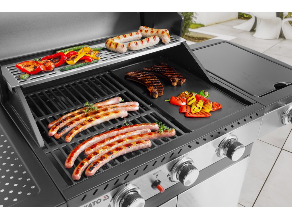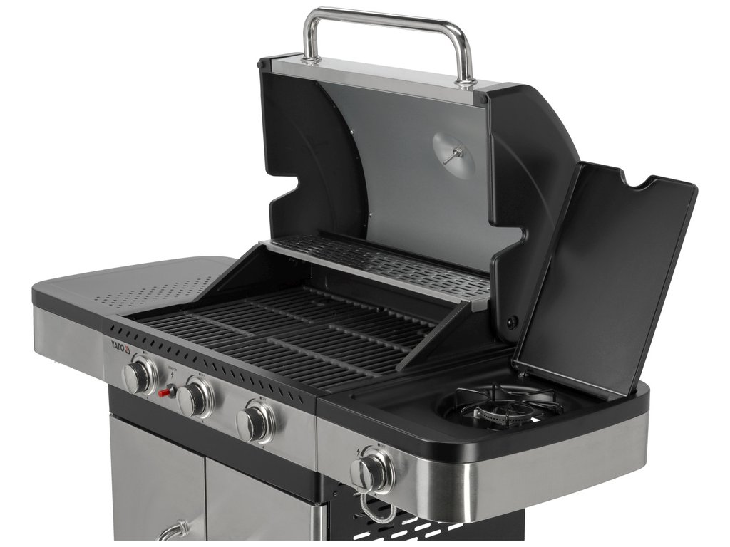 Plynový zahradní nerezový gril 3+1 kryt s litinovým roštem 11,2kW Yato YG-20018