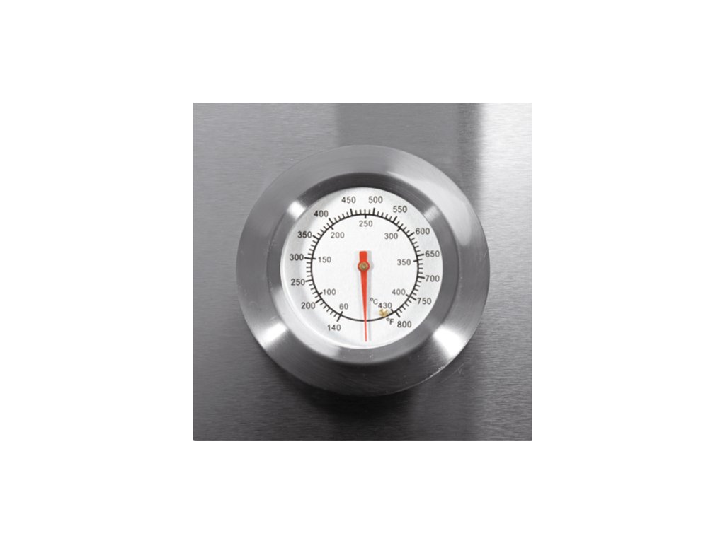 - Teploměr ve víku umožňuje kontrolovat teplotu uvnitř grilu.