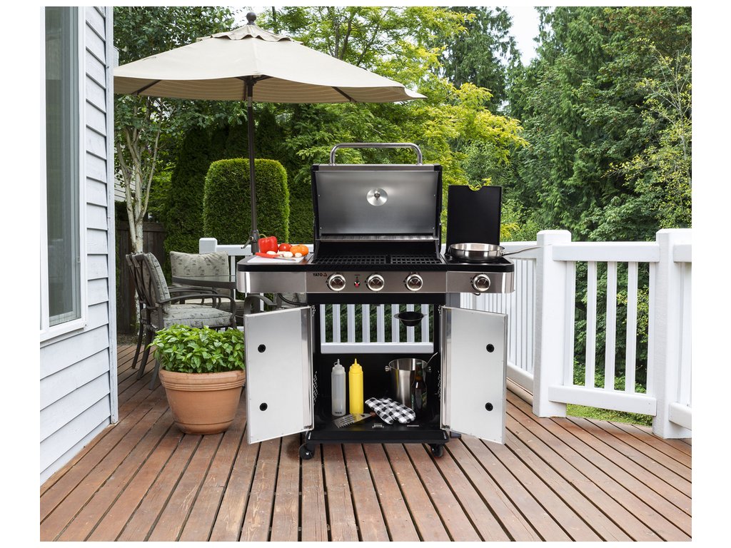 - Čtyři účinné hořáky , včetně jednoho bočního hořáku, poskytují všestranné grilování.