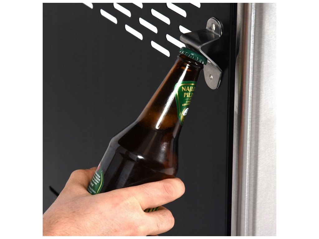 Další výhodou je místo pro plynovou láhev a vestavěný otvírák na lahve.