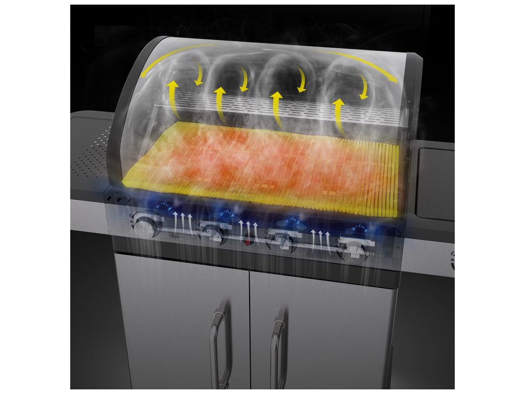 ✔️výjimečná chuť - výjimečné chuti se dosahuje díky odpařování šťáv a tuků z jídla. Kopule v plynovém grilu zastavuje kouř a dodává jídlu aroma
