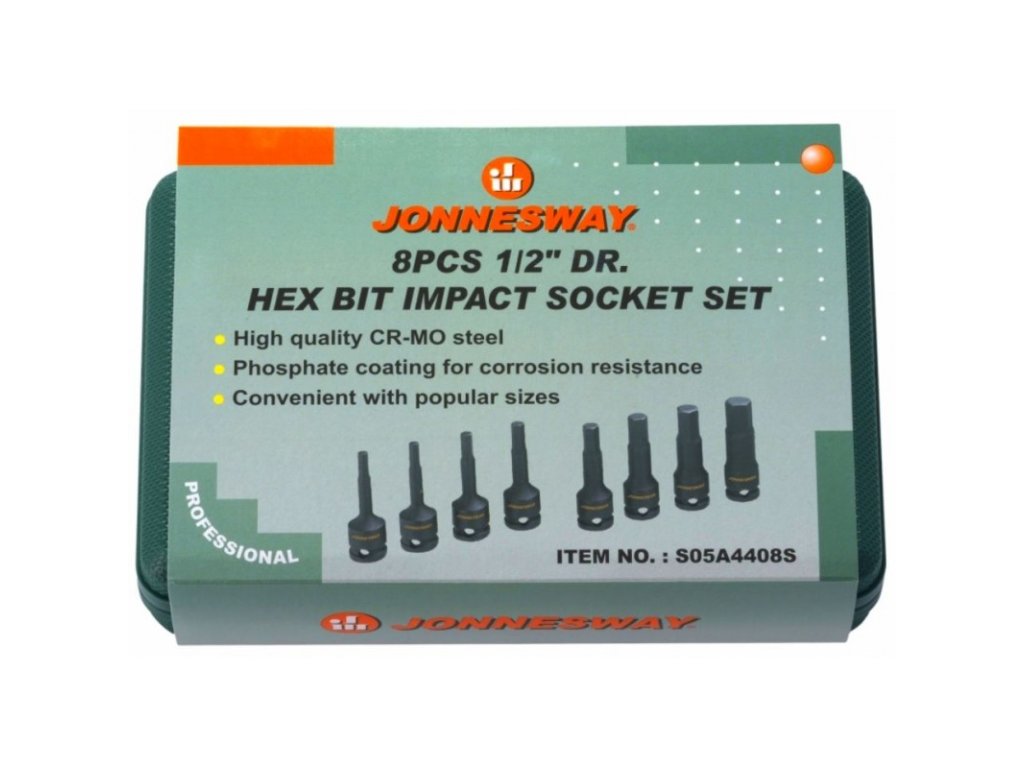 Sada úderových nástrčných klíčů Imbus cálové 1/4" - 3/4" 8ks Jonnesway S05A4408S