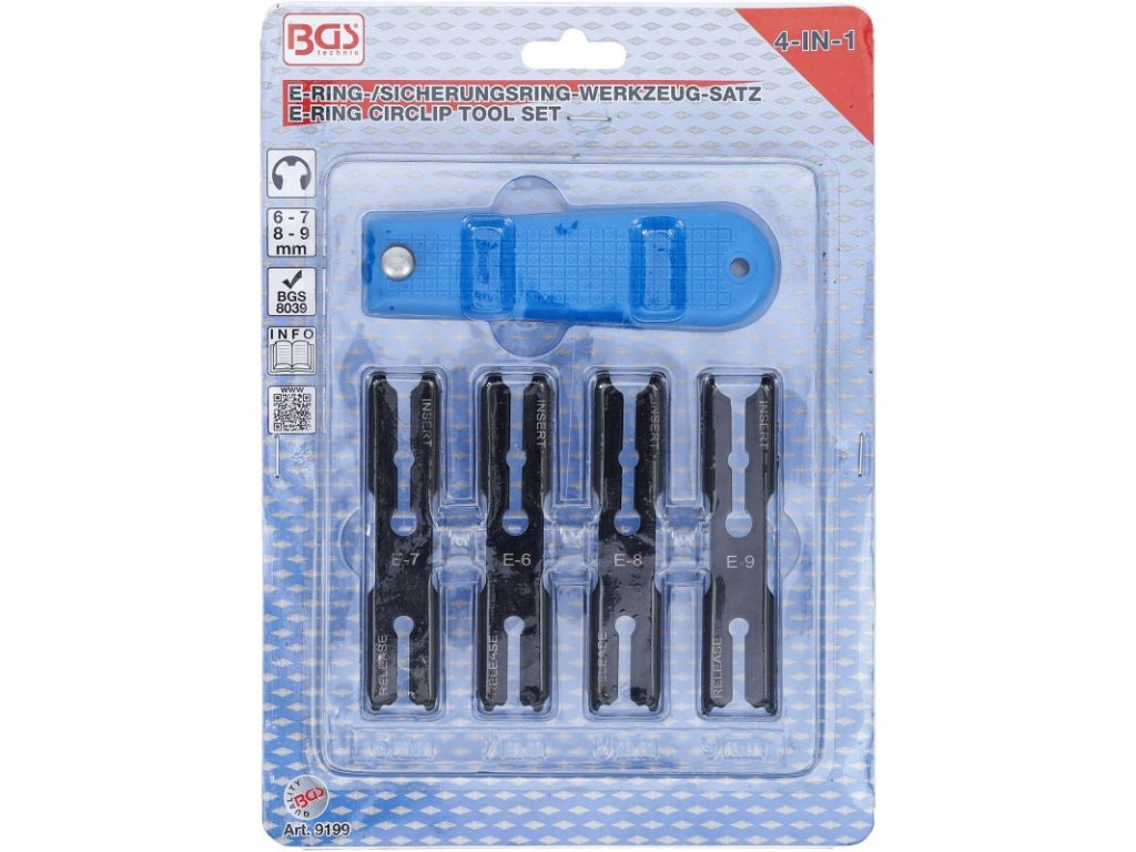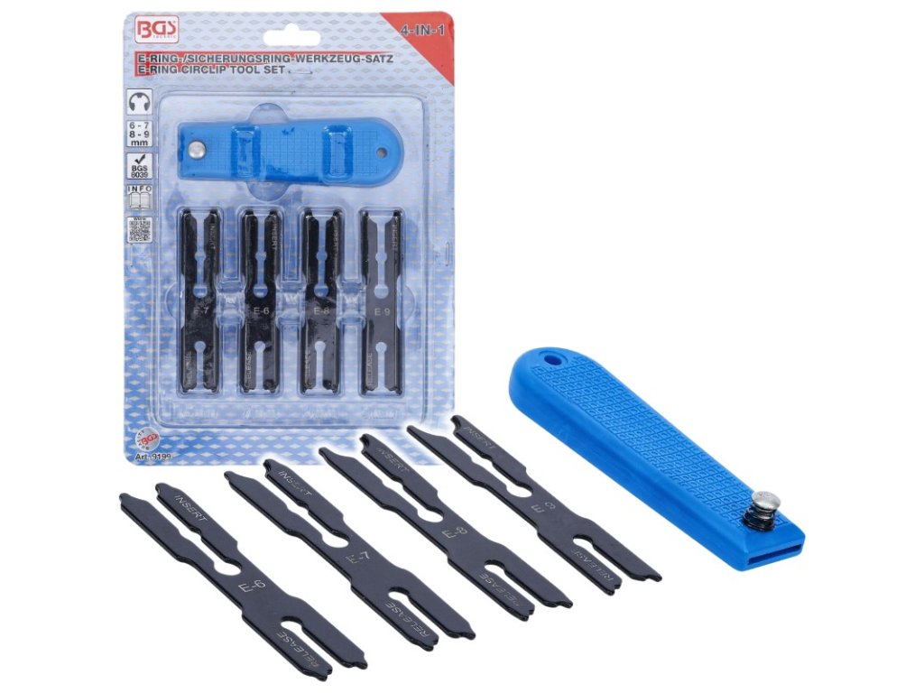 Sada nástrojů na pojistné segrovky E-clip 6,7,8,9mm 4v1 BGS B.9199