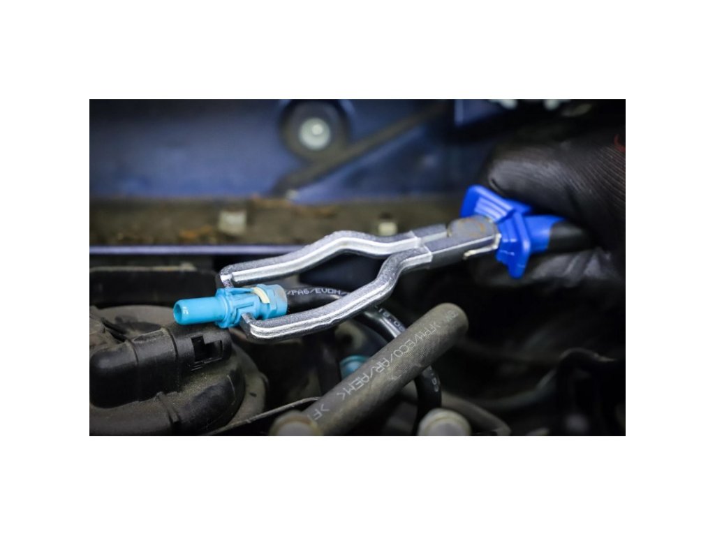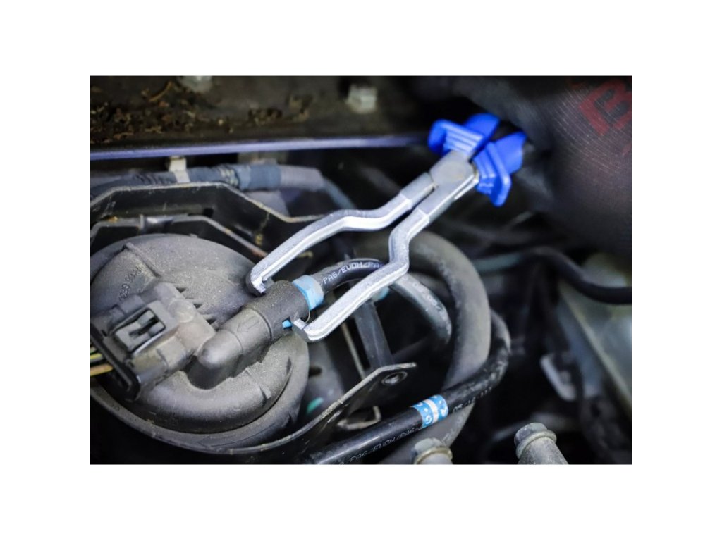 ✅Speciální tvar pracovních hrotů a profilovaná ramena kleští eliminují riziko možného poškození plastových konektorů a dalších prvků palivového potrubí.