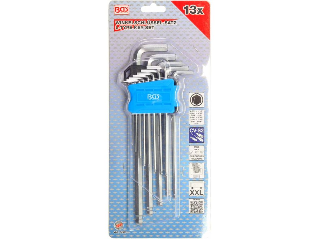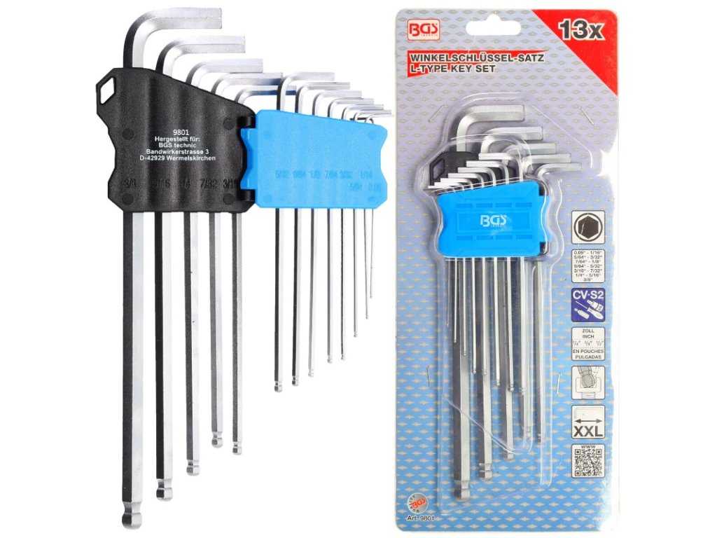 Sada šestihranných (imbusových) klíčů - palcových s kuličkou 0.05'-3/8' 13ks BGS B.9801