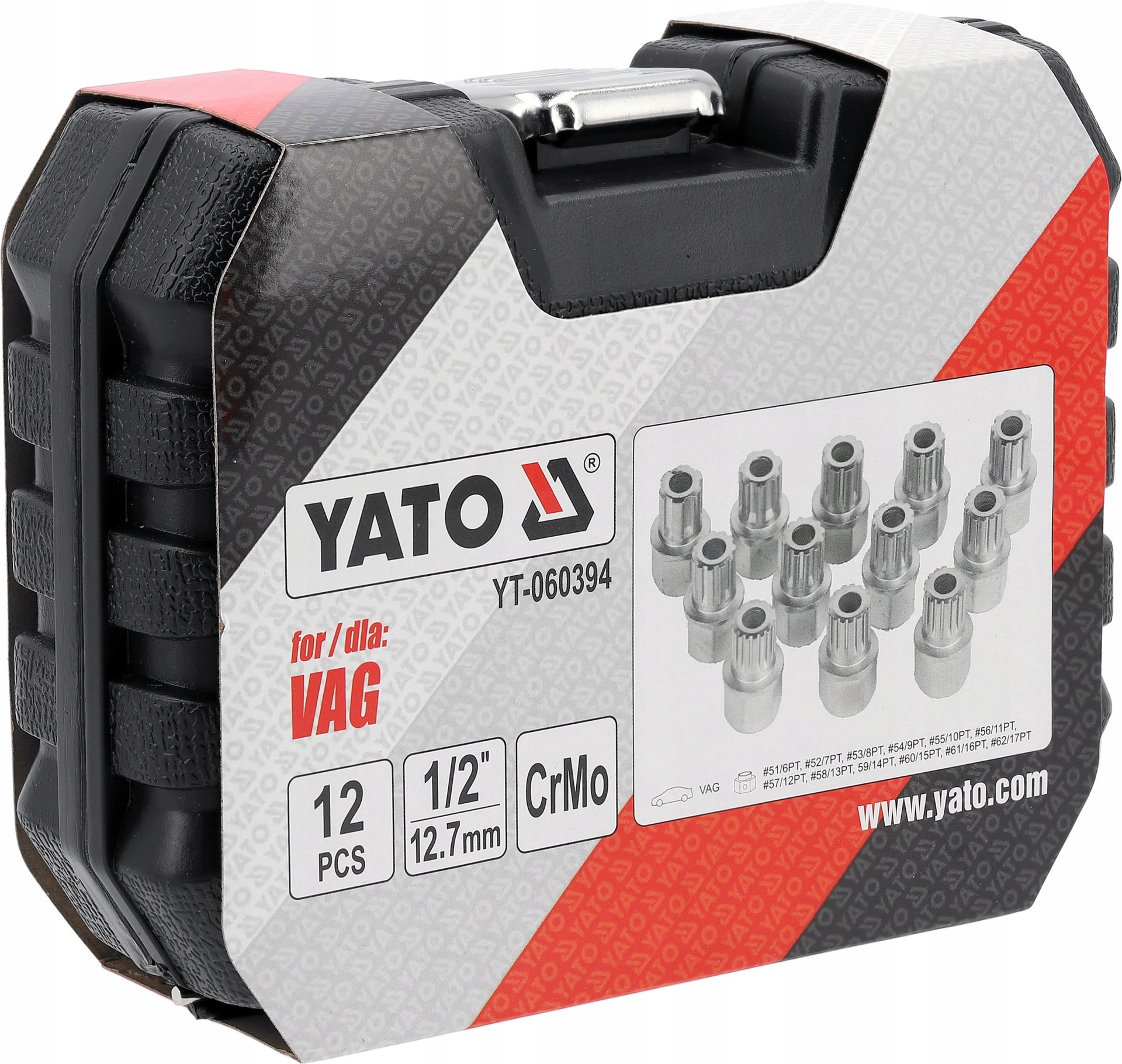 Sada nástrčných klíčů na bezpečnostní šrouby kol VW AUDI 12 ks Yato YT-060394