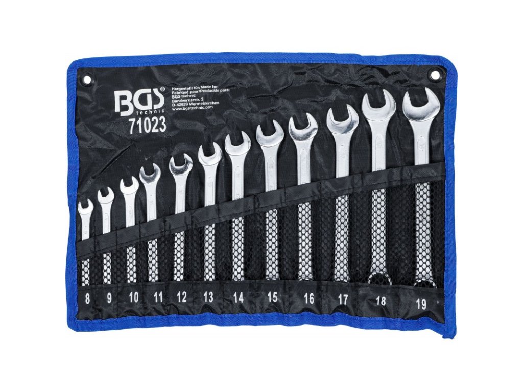 Velká sada otevřených očkoplochých klíčů 8-19mm 12ks BGS B.71023