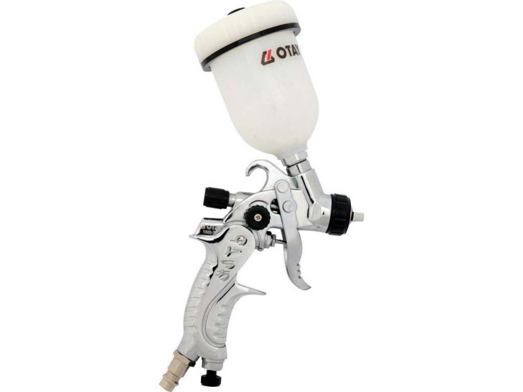 Vzduchová pistole HVLP na lakování, s tryskou 0,8 mm a horní nádržkou 0,1 l, praconí tlak 3 bar, spotřeba vzduchu 220 l/ min, napojení 1/4".