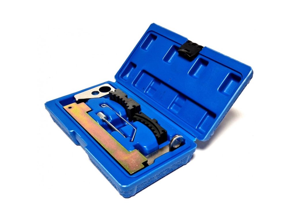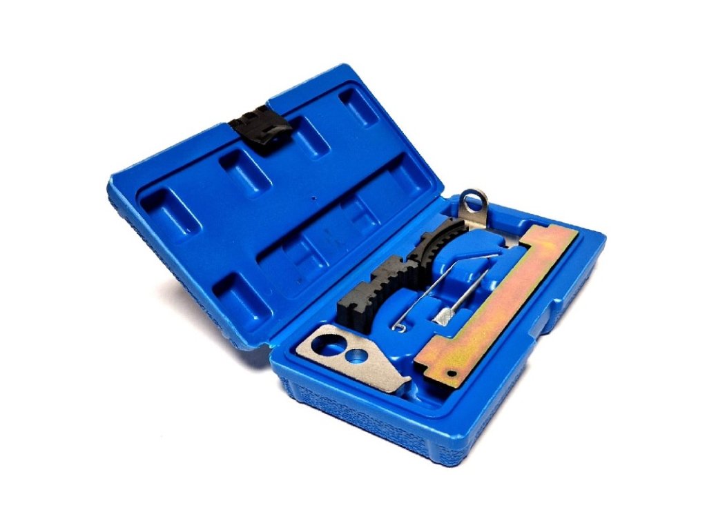 Sada v praktickém kufru obsahuje: nástroj pro nastavení TDC, nástroj pro vačkovou hřídel, kolík pro napínací kladku a zajišťovací šroub.
