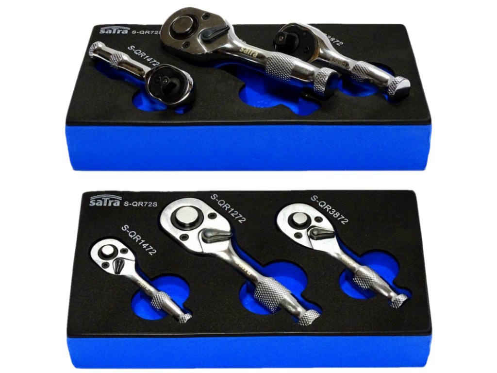 Krátké ráčny, sada 3 ks, 1/4+3/8+1/2', 72 zubů, ve vložce do vozíku