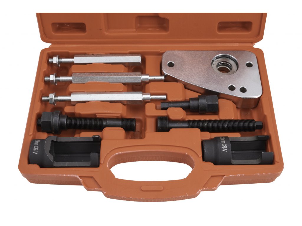 Umožňuje demontáž zapečených vstřikovačů s mostem pasujícím na hlavu motoru zabraňující poškození.