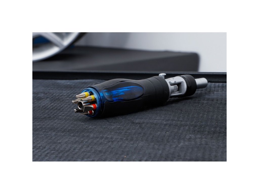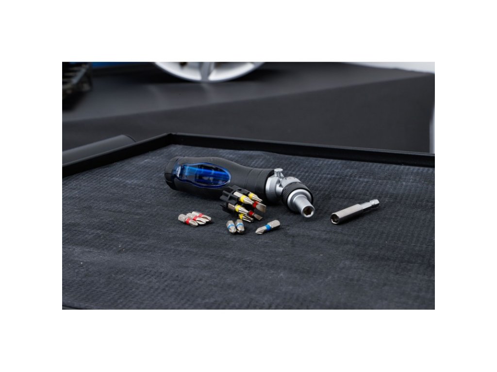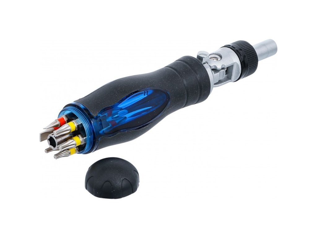 • 12dílný zásobník bitů integrovaný a skrytý v rukojeti s magnetickým držákem bitů pro bity 1/4".