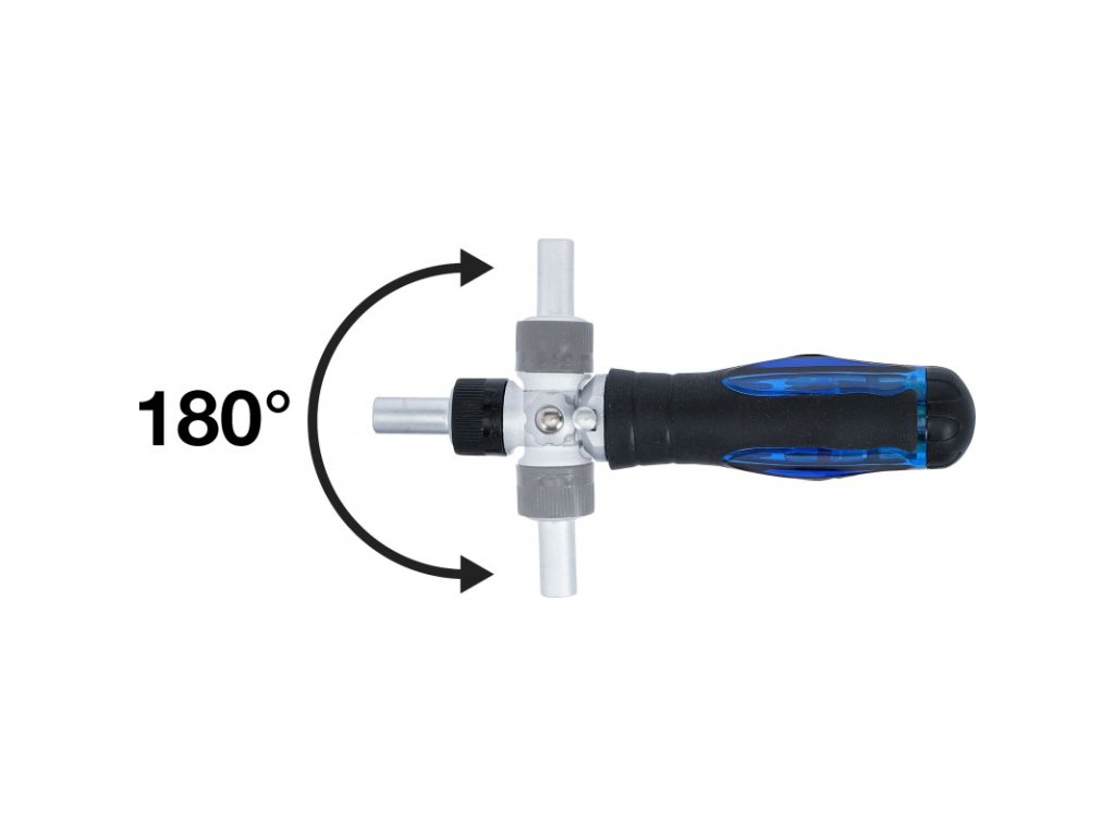 - kloubový šroubovák s otočnou rukojetí s ráčnou, přepínatelný 1/4",