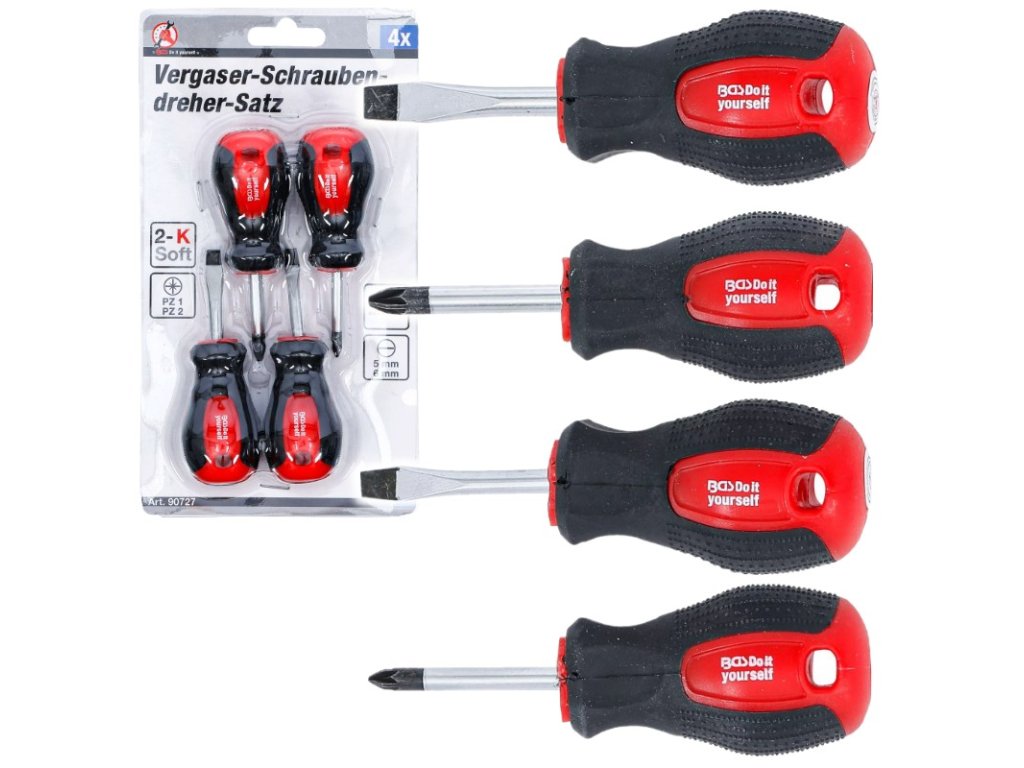 Sada čtyř krátkých rovných a křížových šroubováků PZ1 a PZ2 BGS B.90727