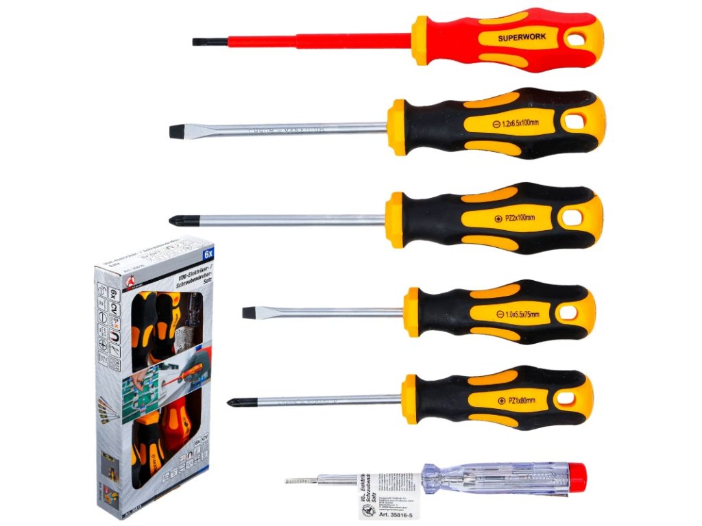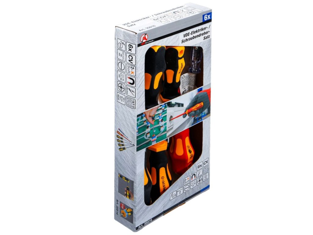 Sada 6 kusů magnetických šroubováků VDE s křížovou hlavou pro elektrikáře BGS B.35816