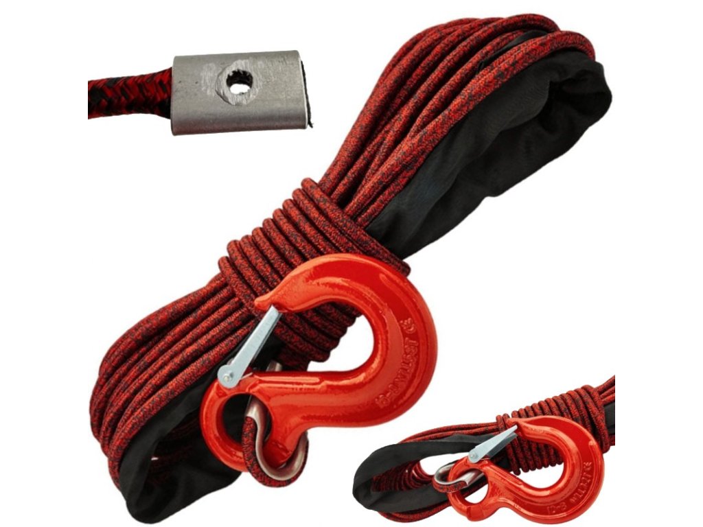 Syntetické lano pro naviják 10 mm 28 m s hákem 5,6t