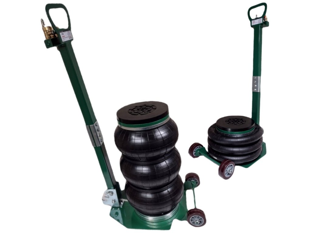 ✅Zvedák má dva ventily: vstupní a výstupní; díky tomu se po odpojení zdroje vzduchu zvedák automaticky nespadne.