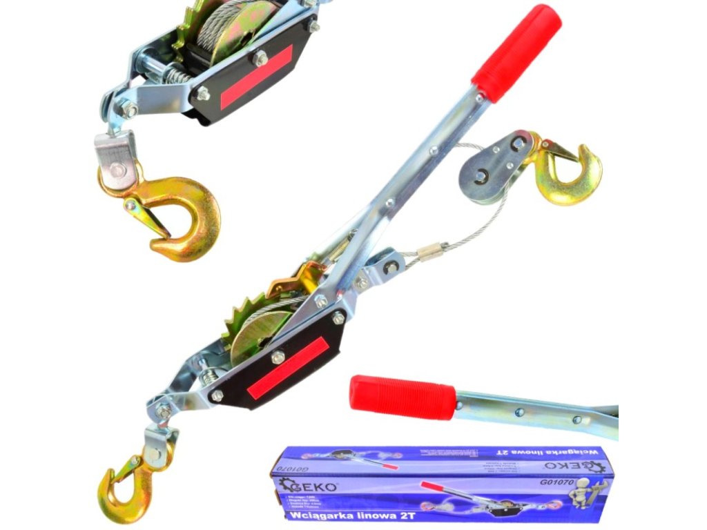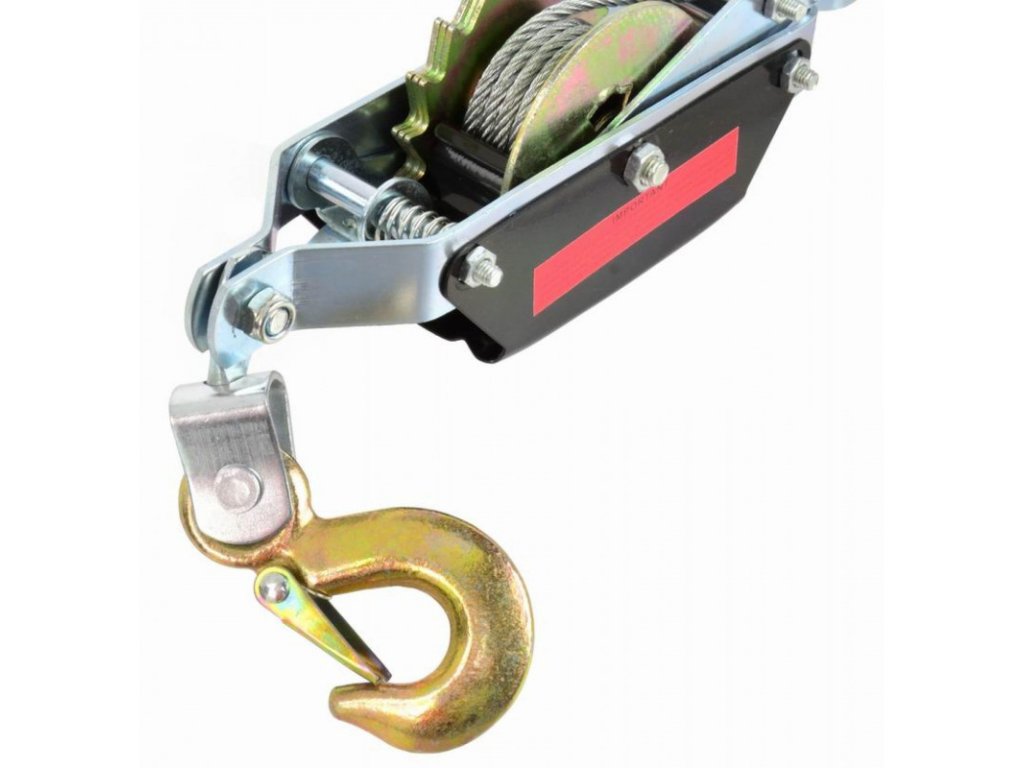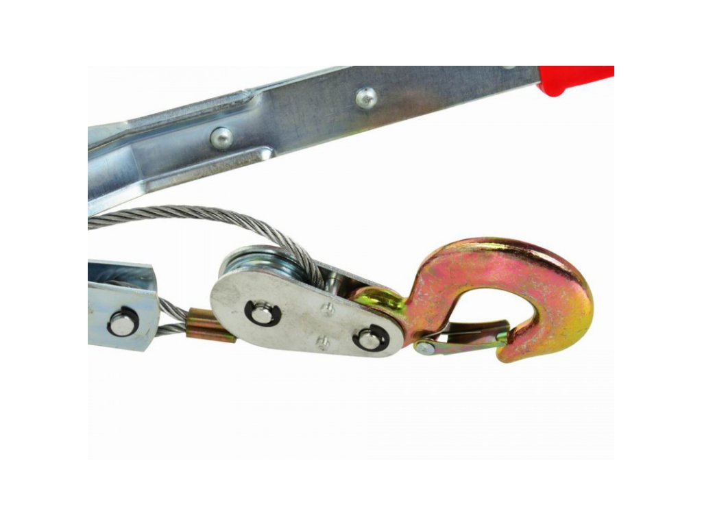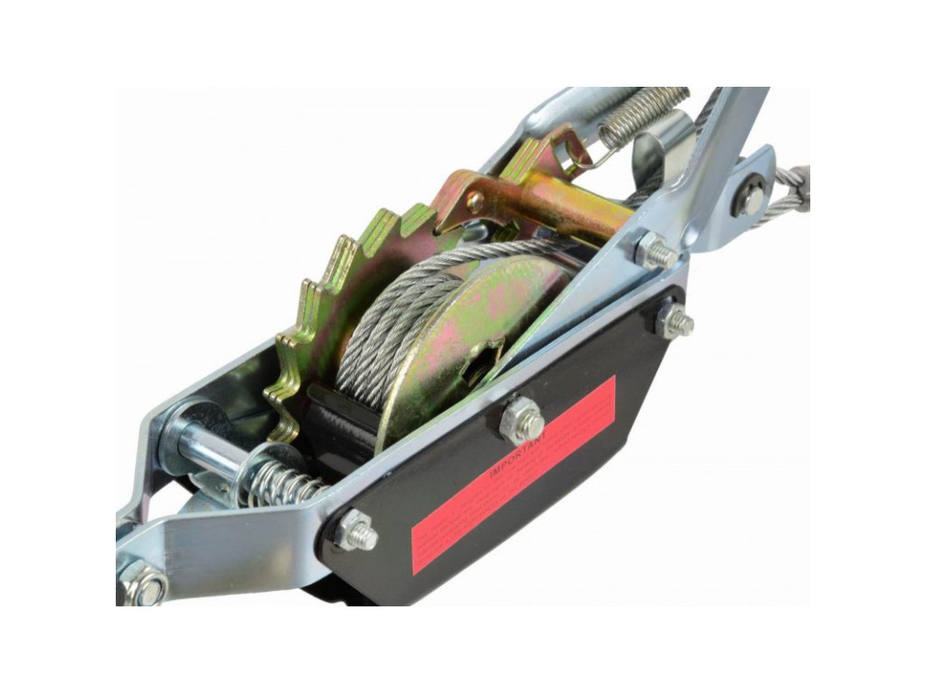 Součástí navijáku je ocelové lano a páka pohánějící buben s ráčnovým mechanismem s poměrem 15:1