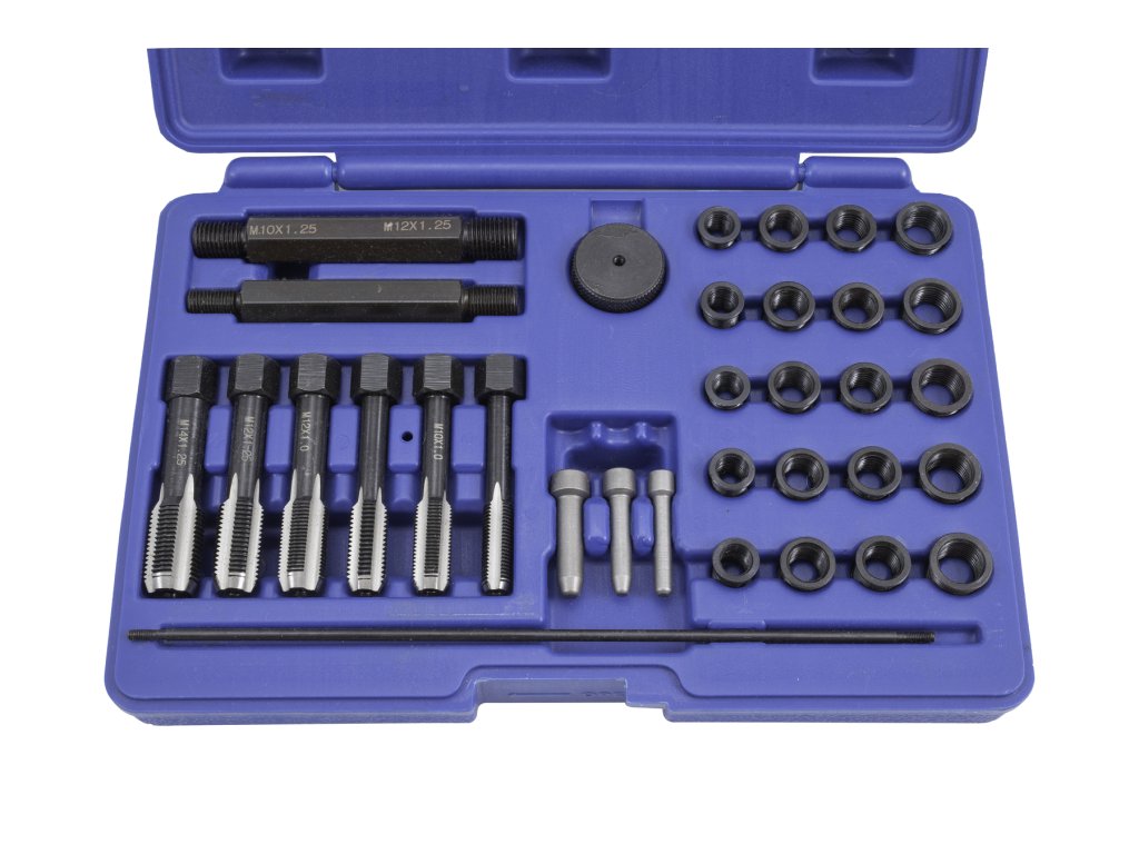 Souprava slouží k rychlé a odborné opravě poškozených závitů žhavicích svíček (tzv. žhaviček). Obsahuje vše potřebné k vyřezání nového závitu větší velikosti a instalaci nové vložky s vnitřním závitem původní velikosti.